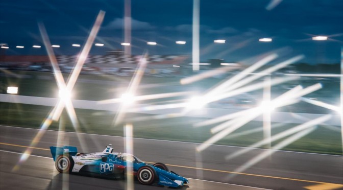 Le monoposto dell’IndyCar Series invece che alle 11.00 AM hanno infine potuto disputare i 60’ previsti sotto le luci artificiali (come peraltro avverrà in gara), pochi contando le tante incognite che la serie aveva in serbo per questa gara.
