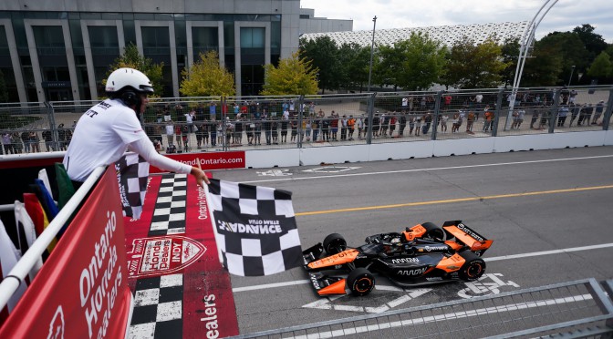 Pato O’Ward vince la sua seconda gara dell’IndyCar Series 2025 a Toronto. Il messicano di Arrow McLaren trionfa sotto gli occhi del patron Zak Brown al termine di una gara dura, spezzettata da cinque Caution, riducendo il gap in classifica nei confronti di Alex Palou, solamente 12mo.